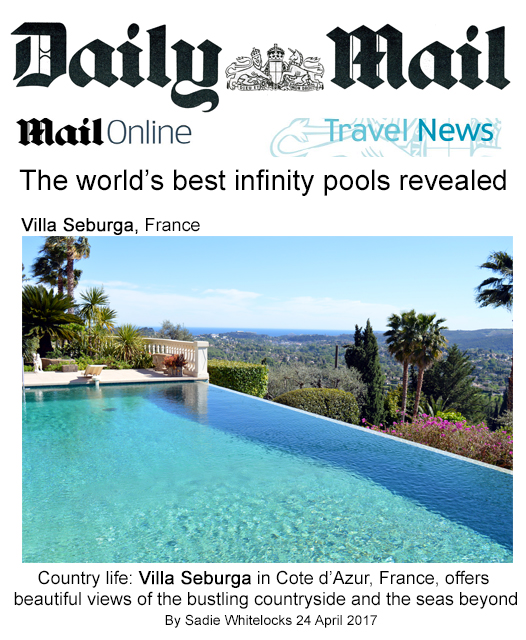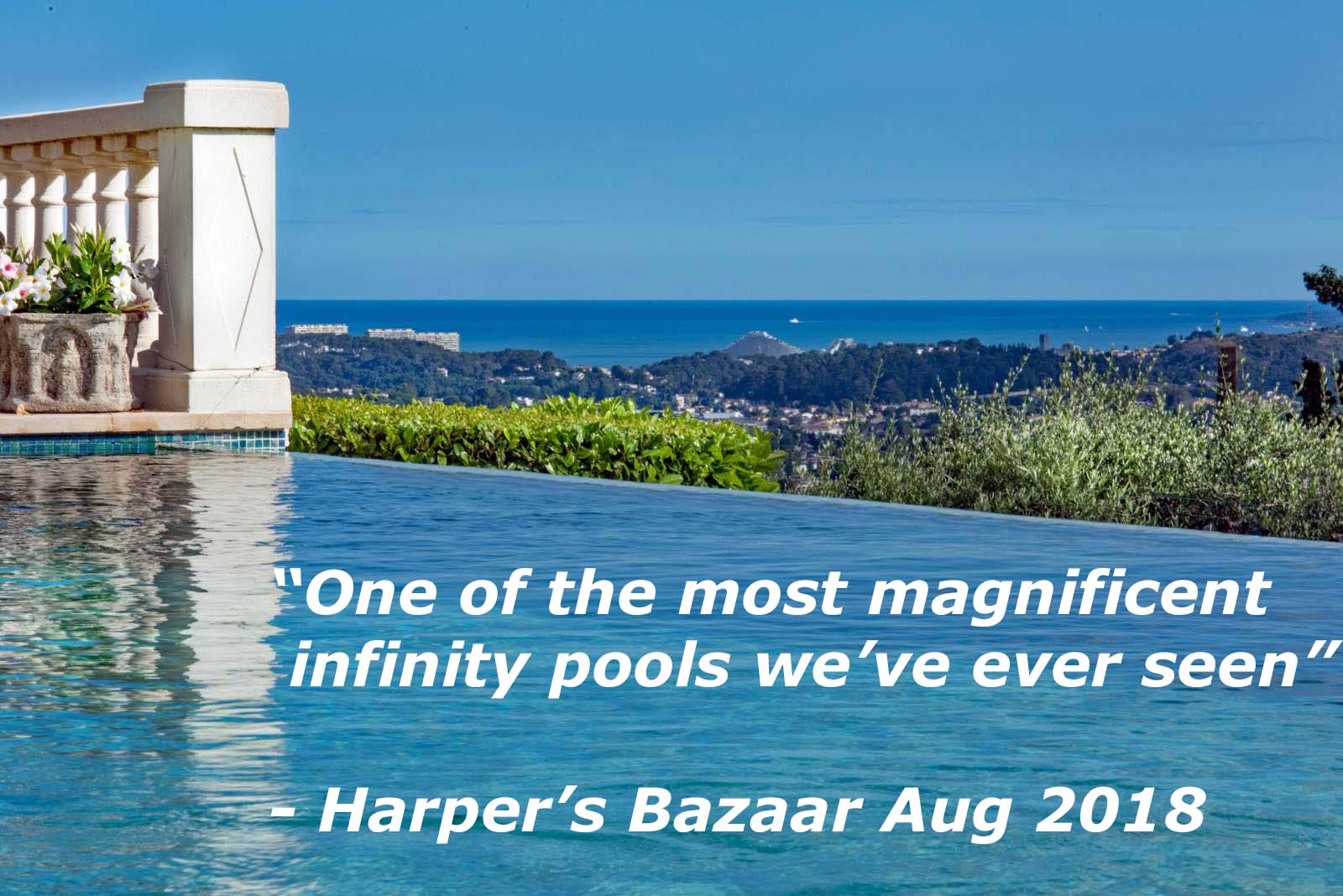 The swimming pool has been featured in both the London Daily Mail and Harper's Bazaar as one of the World's Best Infinity Pools. Its features include: