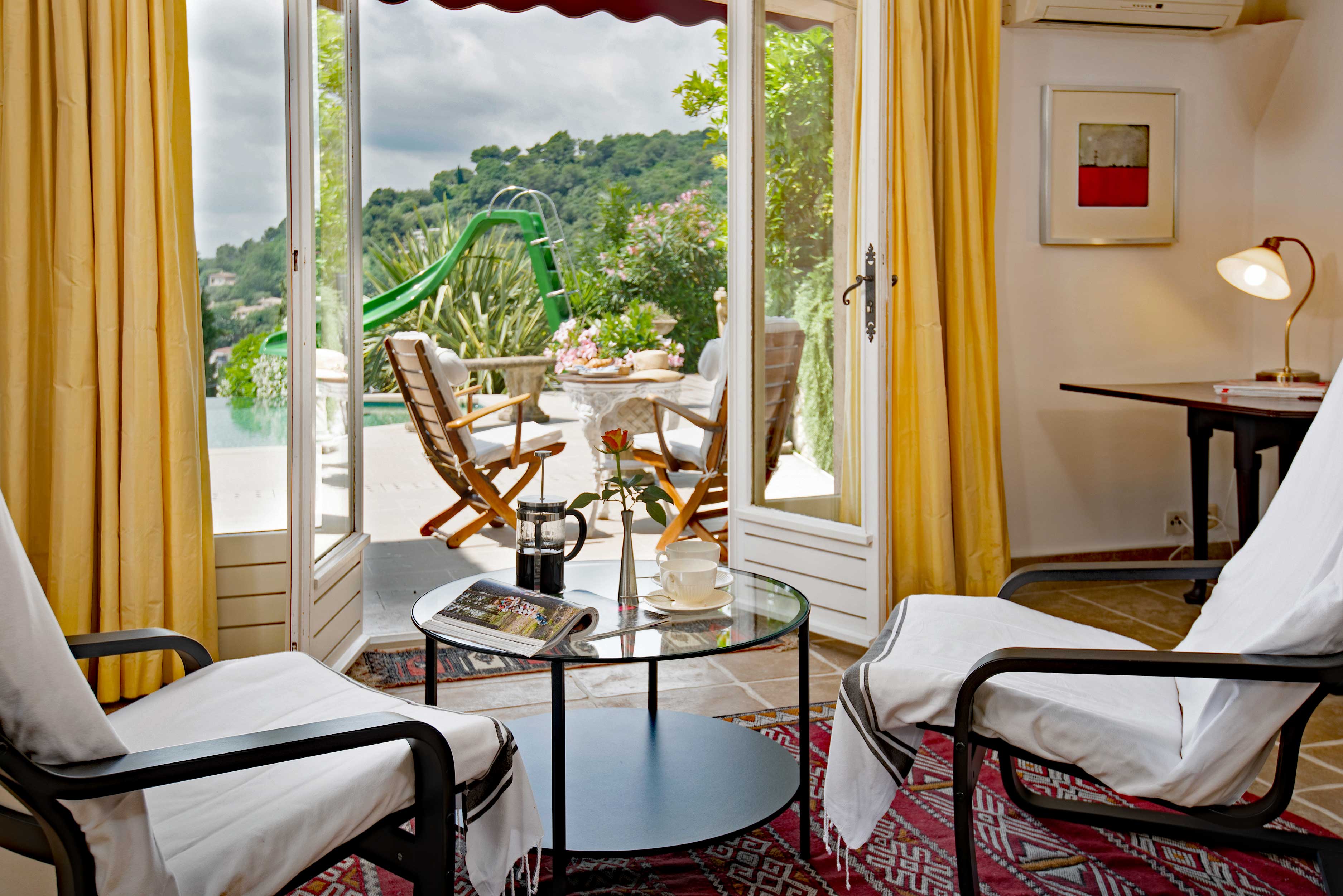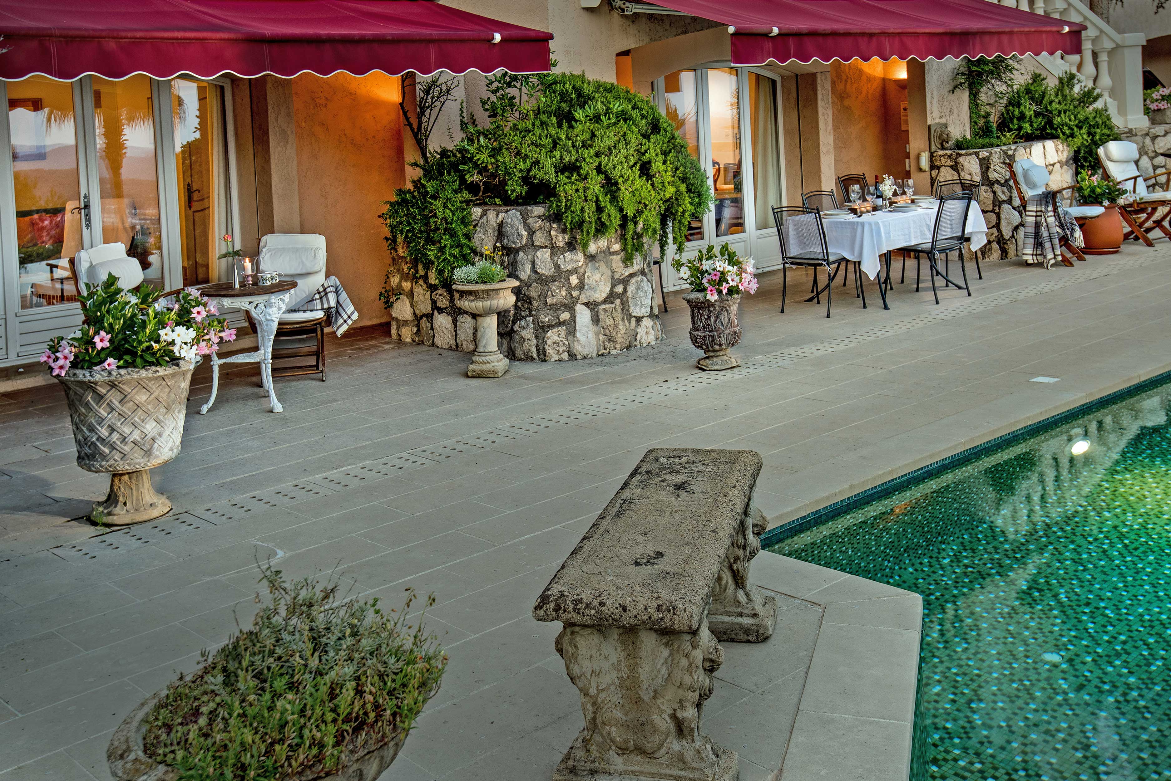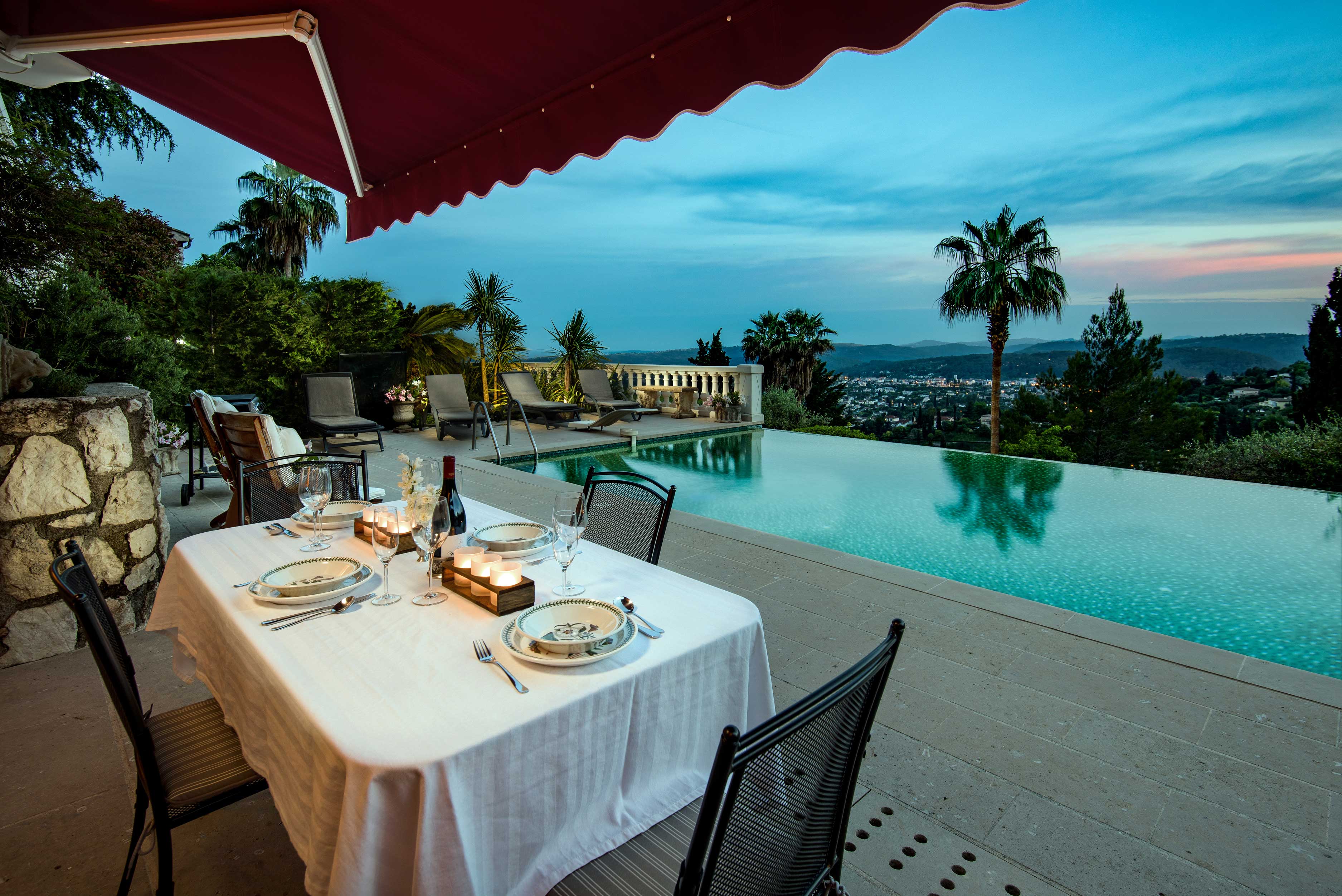 The terraces offer views of the Mediterranean and the countryside of Provence-Cote d'Azur towards Cannes & Mougins by day. By night, you will see the distant twinkling lights of aircraft approaching Nice over the sea and the flashing light from the Cap d'Antibes Lighthouse.