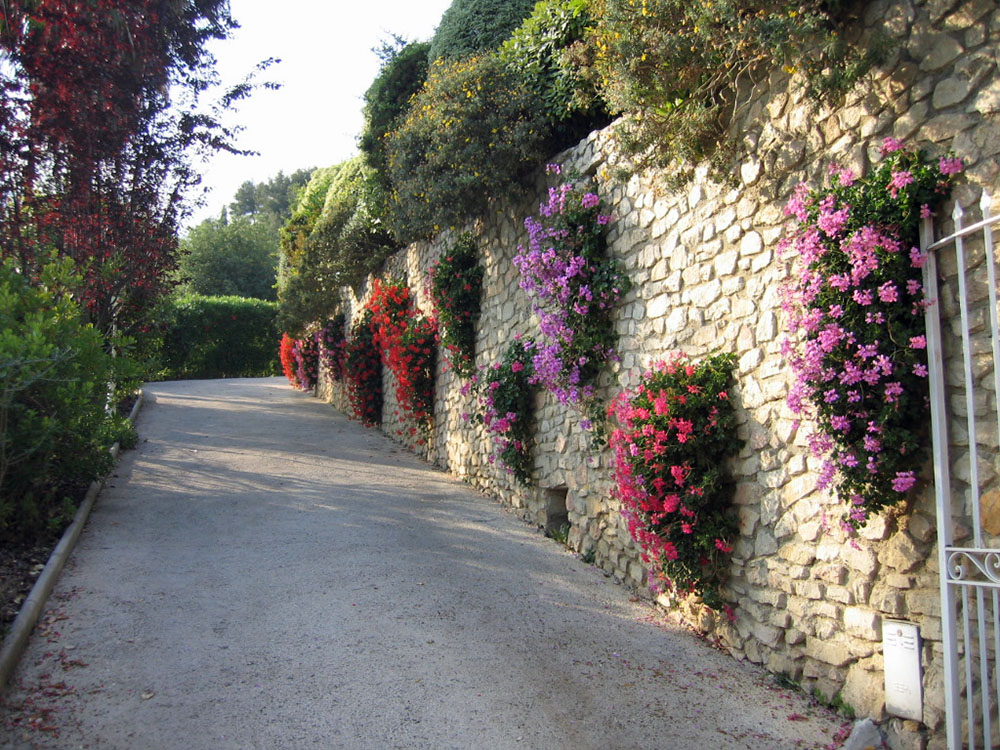 The property cannot be seen from the road below or from above. The rear wall borders the Fondation Maeght museum, hidden behind trees. Villa Seburga is located on a quiet residential road leading to the top of a hill and a nature trail through woods beyond.